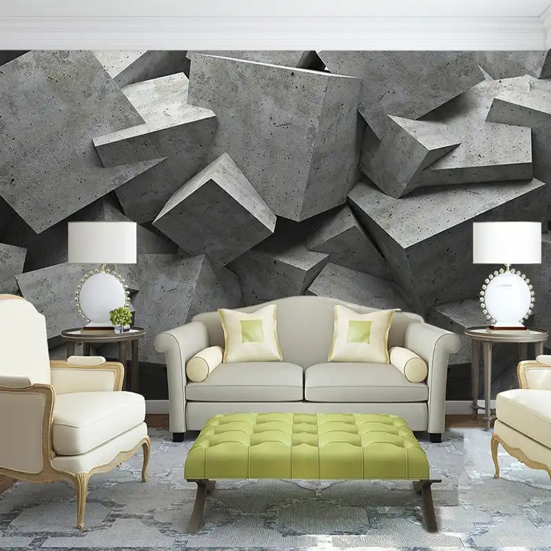 Avoir Personnalise Mur Tissu Moderne 3d Geometrie Ciment Photo Peintures