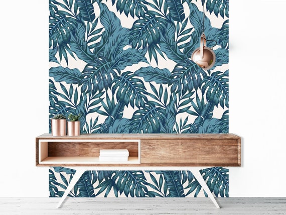 Télécharger gratuitement Papier Peint Adhesif Repositionnable Palmeraie Bleu Paon Etsy