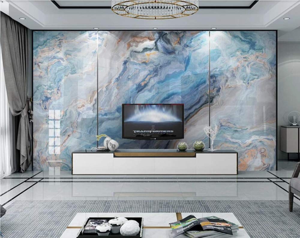 Gratuit 350x245 Cm Wemall Bleu Marbre Papier Peint Murale Pour Salon